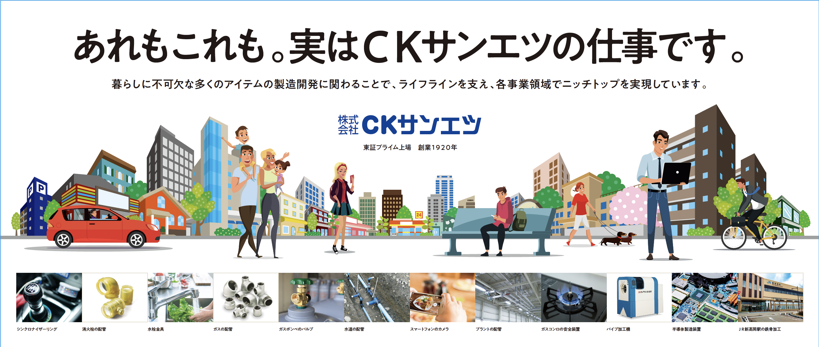 暮らしに根付く企業をコンセプトに、その専門的な業態を親しみやすいイラストで伝えるデザインとしました。