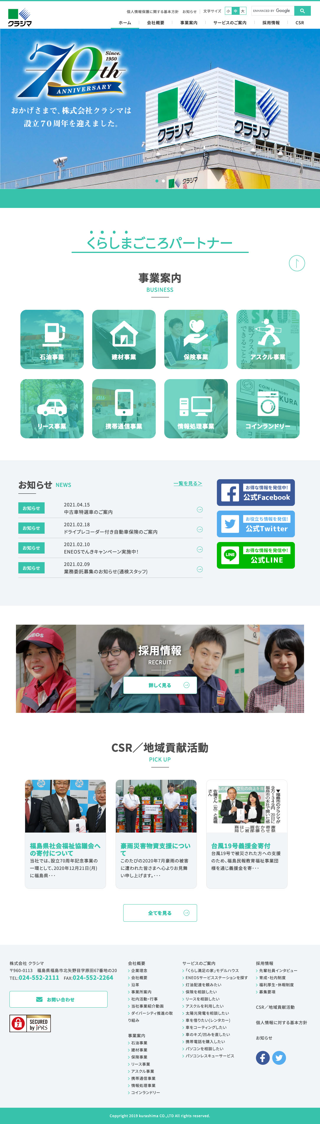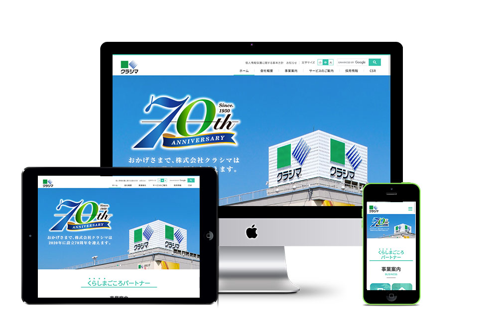 株式会社 クラシマ (コーポレートサイト) 様 2020年10月6日(火曜日) ホームページ https://www.kurashima.co.jp/ CLIENT / 株式会社 クラシマ (コーポレートサイト) 様 TYPE / WEBサイト制作